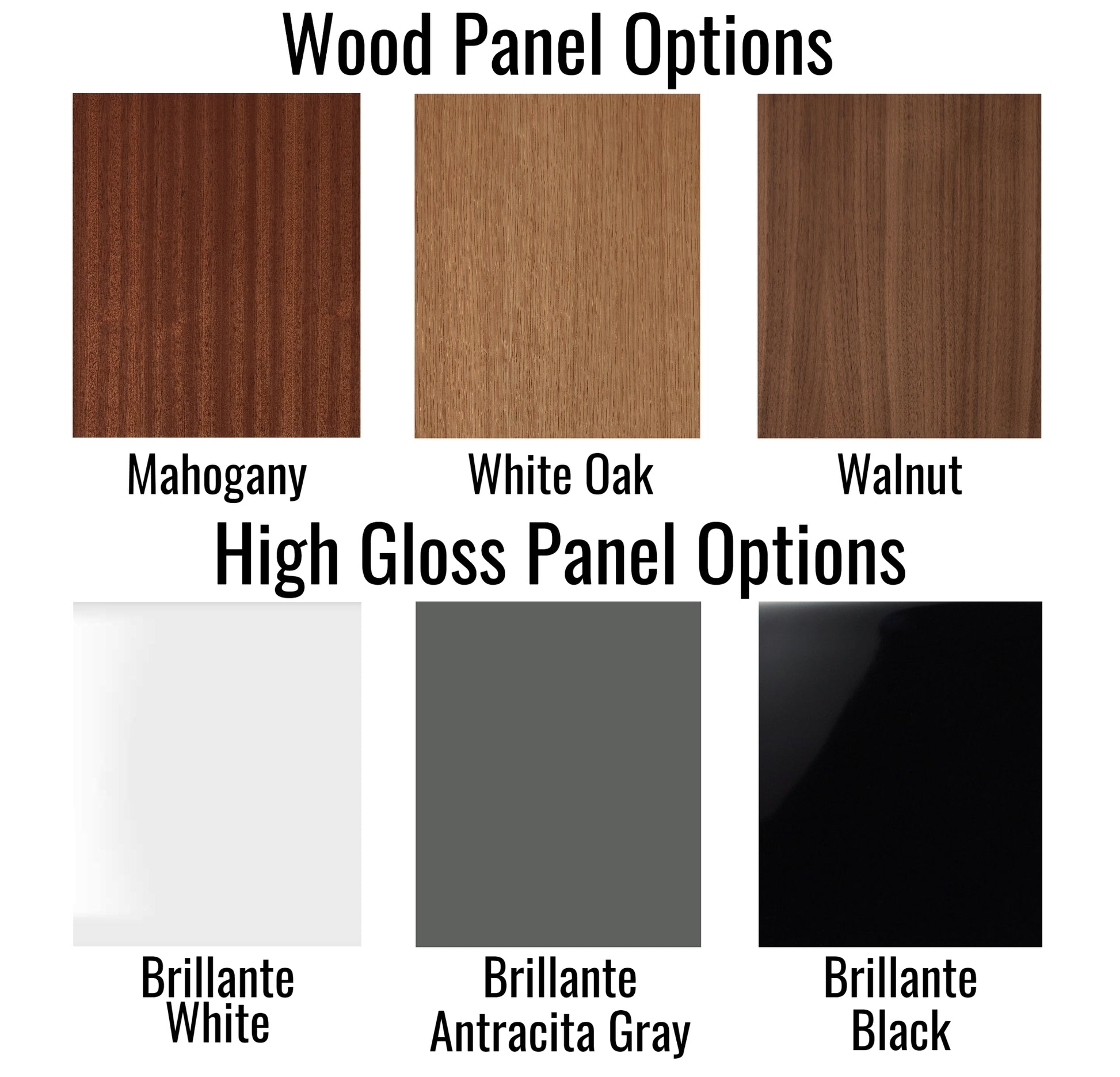 - Header and base in your choice of solid hardwood in a clear acrylic finish or high-gloss European panels