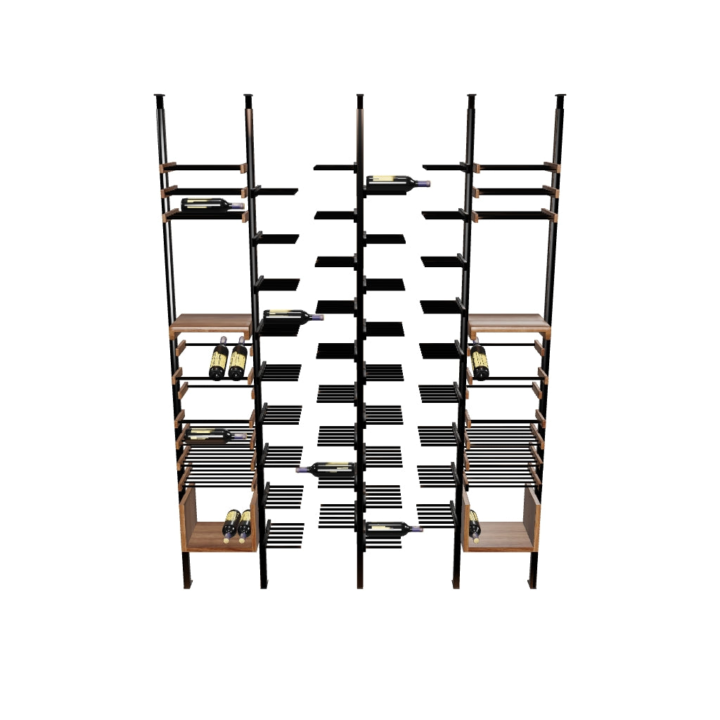 The wine racks can be mounted floor to ceiling or floor to the wall depending on your application.
