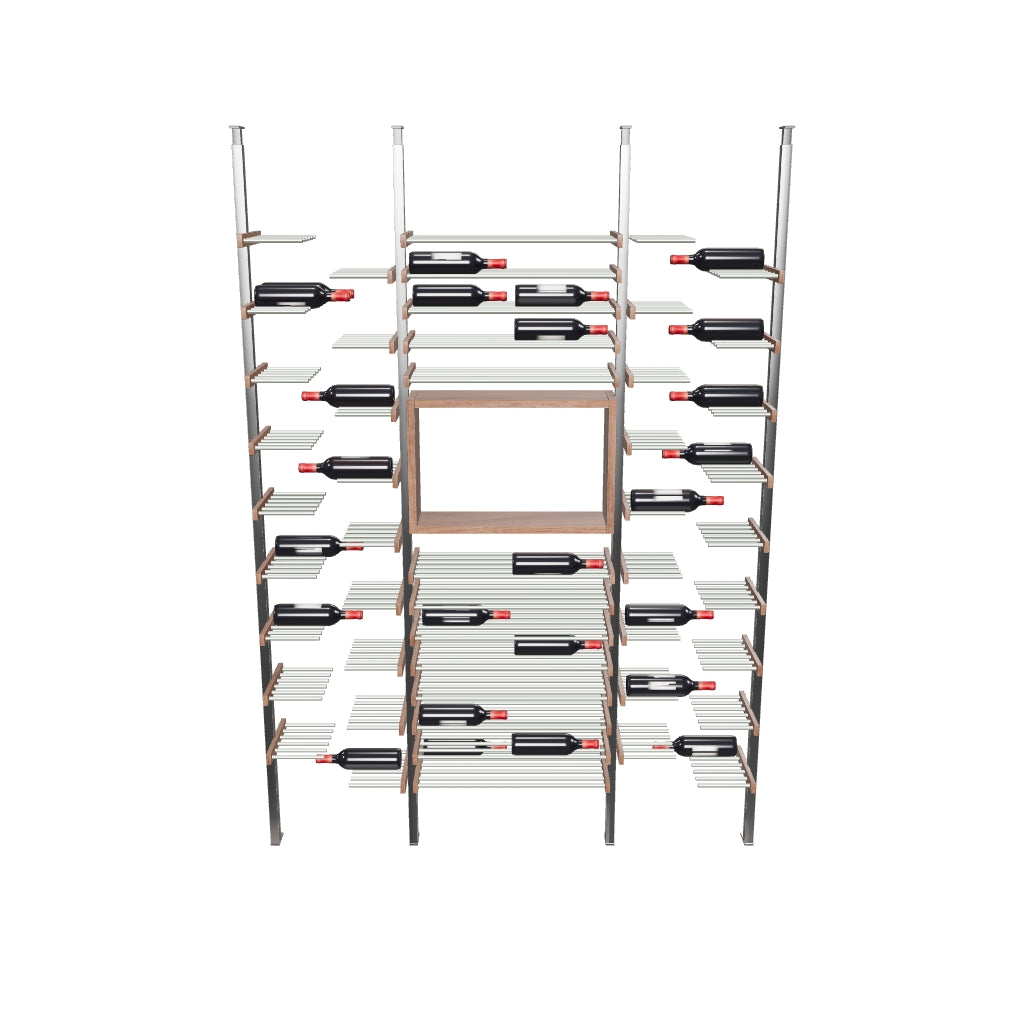 The wine racks can be mounted floor to ceiling or floor to the wall depending on your application.