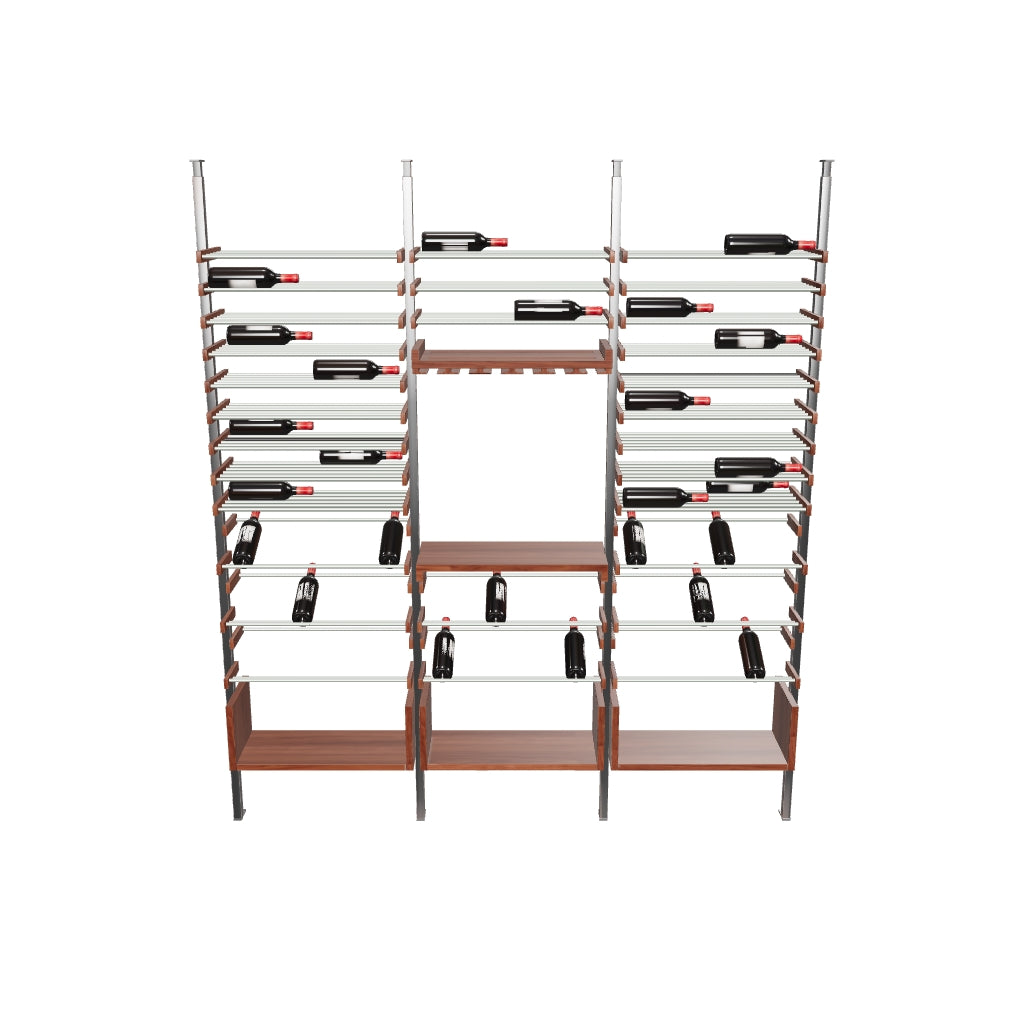 The wine racks can be mounted floor to ceiling or floor to the wall depending on your application.