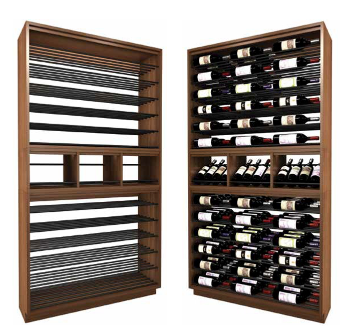 - Base unit Parallel metal hardware, label forward wine storage 3 deep – includes 3” base platform