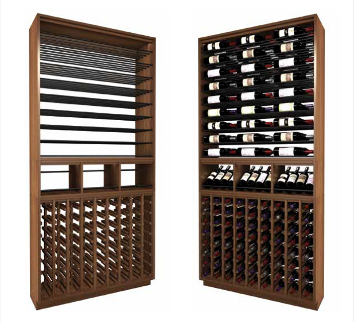 - Upper unit Parallel metal wine hardware, label forward wine storage 3 deep