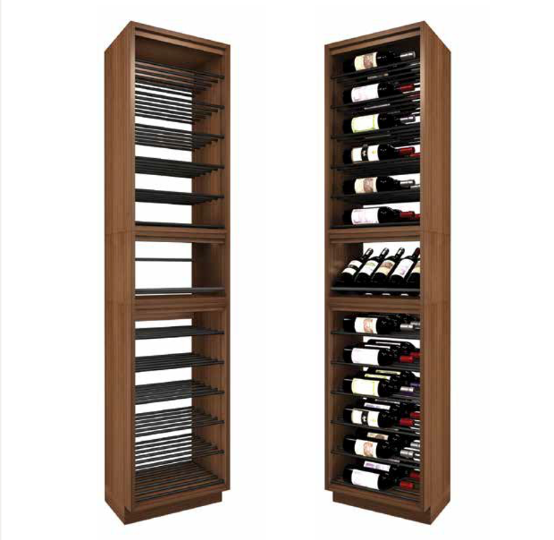 - Base unit Parallel metal hardware, label forward wine storage 3 deep – includes 3” base platform