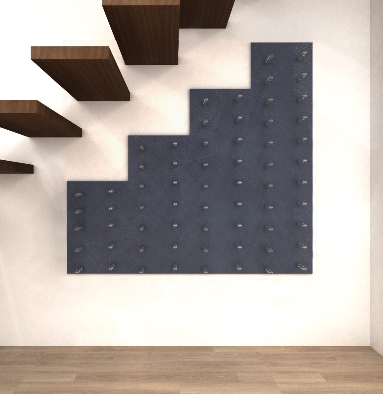 The Coral Gables Wine Wall by Kessick holds 64 bottles, label-forward, two deep. This wall panels system is configured at a 37 degree angle to match the most common stair geometry. The design is available in a left or right orientation. Choose from 15 different panel materials and 3 wine post finish options.