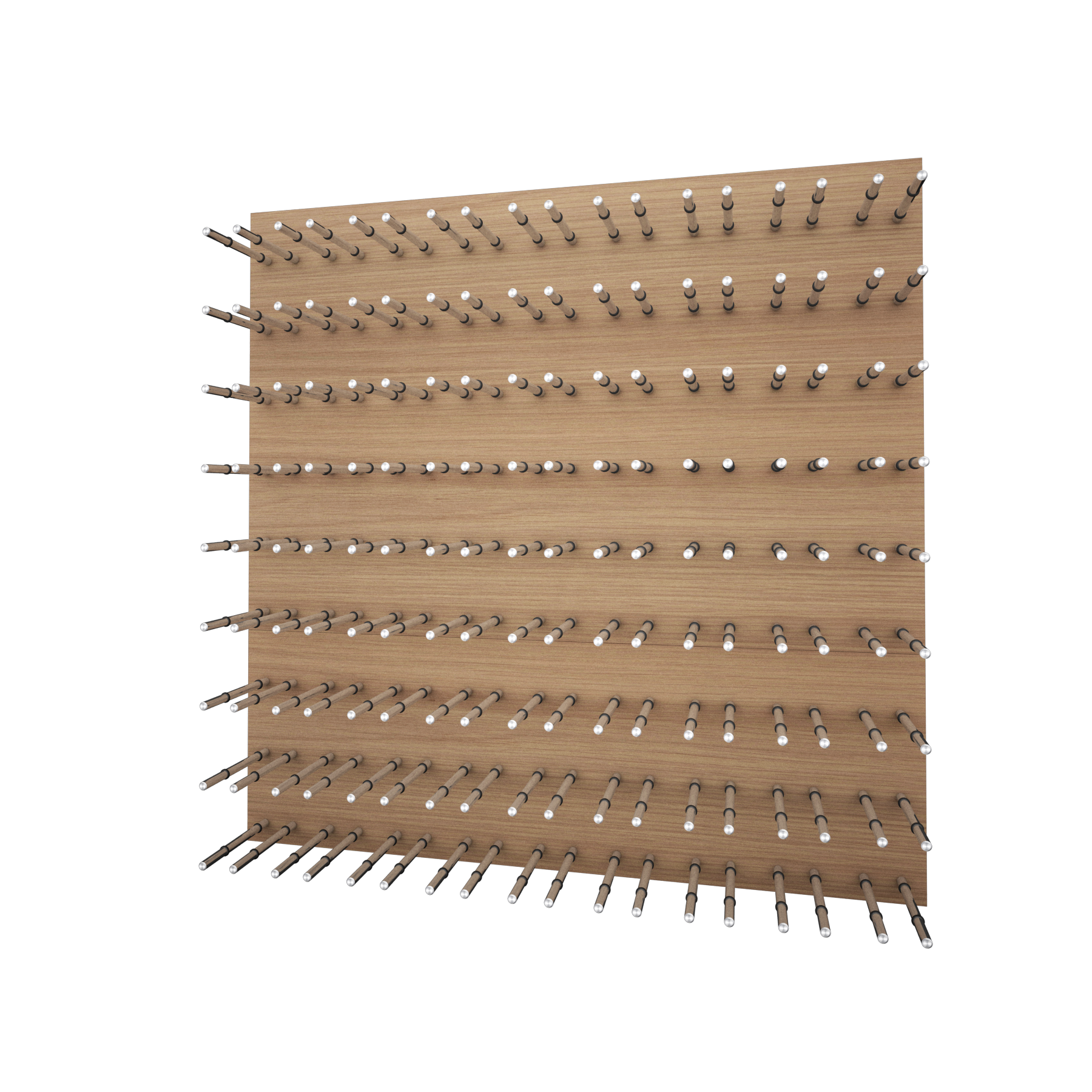 The Eastover Wine Wall by Kessick holds 81 bottles, cork-forward. Choose from 15 different panel materials and 3 metal peg finish options.