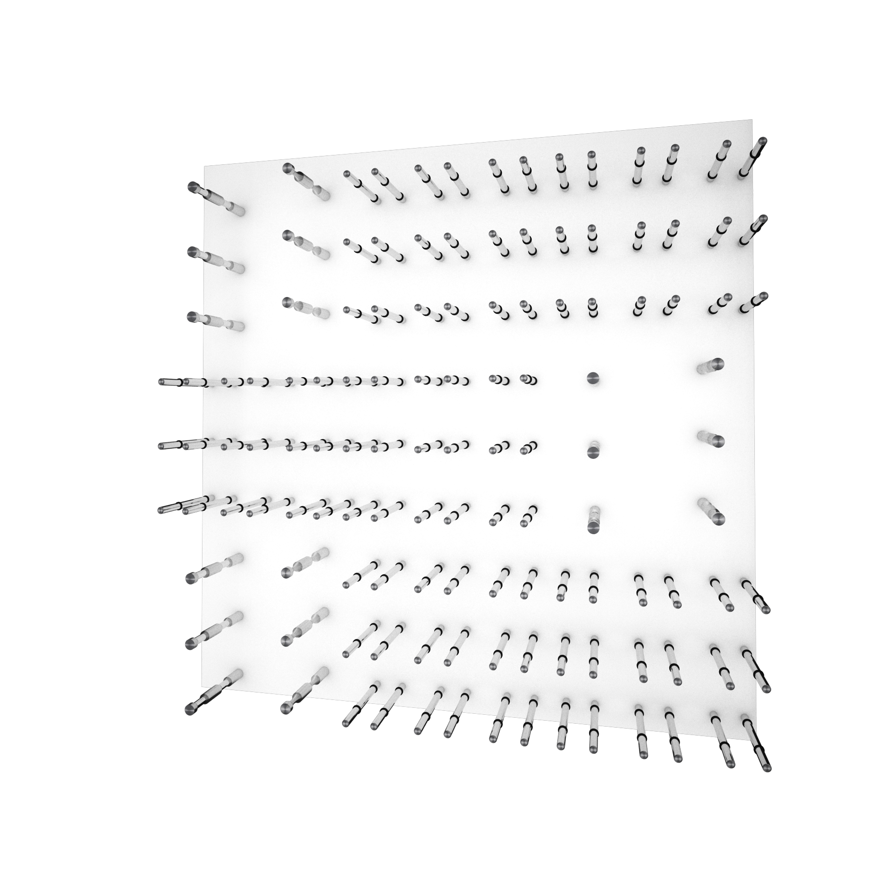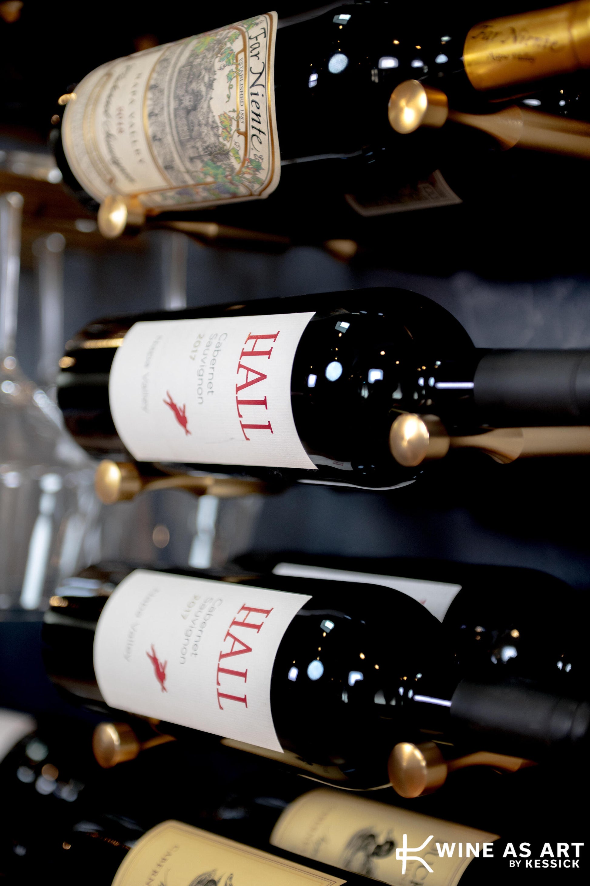 The Woodlands Wine Wall by Kessick holds 54 bottles, cork-forward, and 18 two deep, label-forward. Choose from 15 different panel materials and 3 metal post and peg finish options.